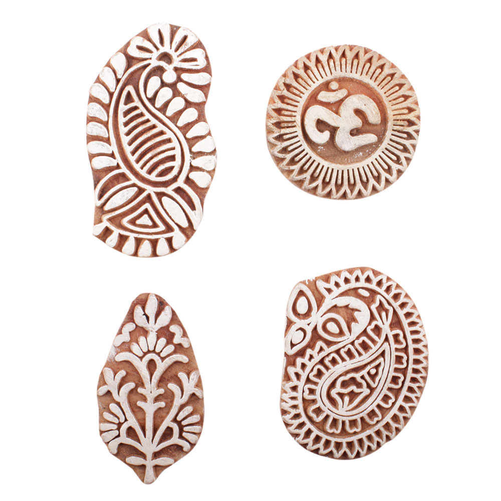 Set of 4 Piece New Mix Wooden Printing Block. Ideal for use on Fabric, Paper, Canvas, etc. These Blocks can be use to Print with Oil Colors, Fabric Colors, Water Colors, Acrylic Colors and Vegetable Colors.