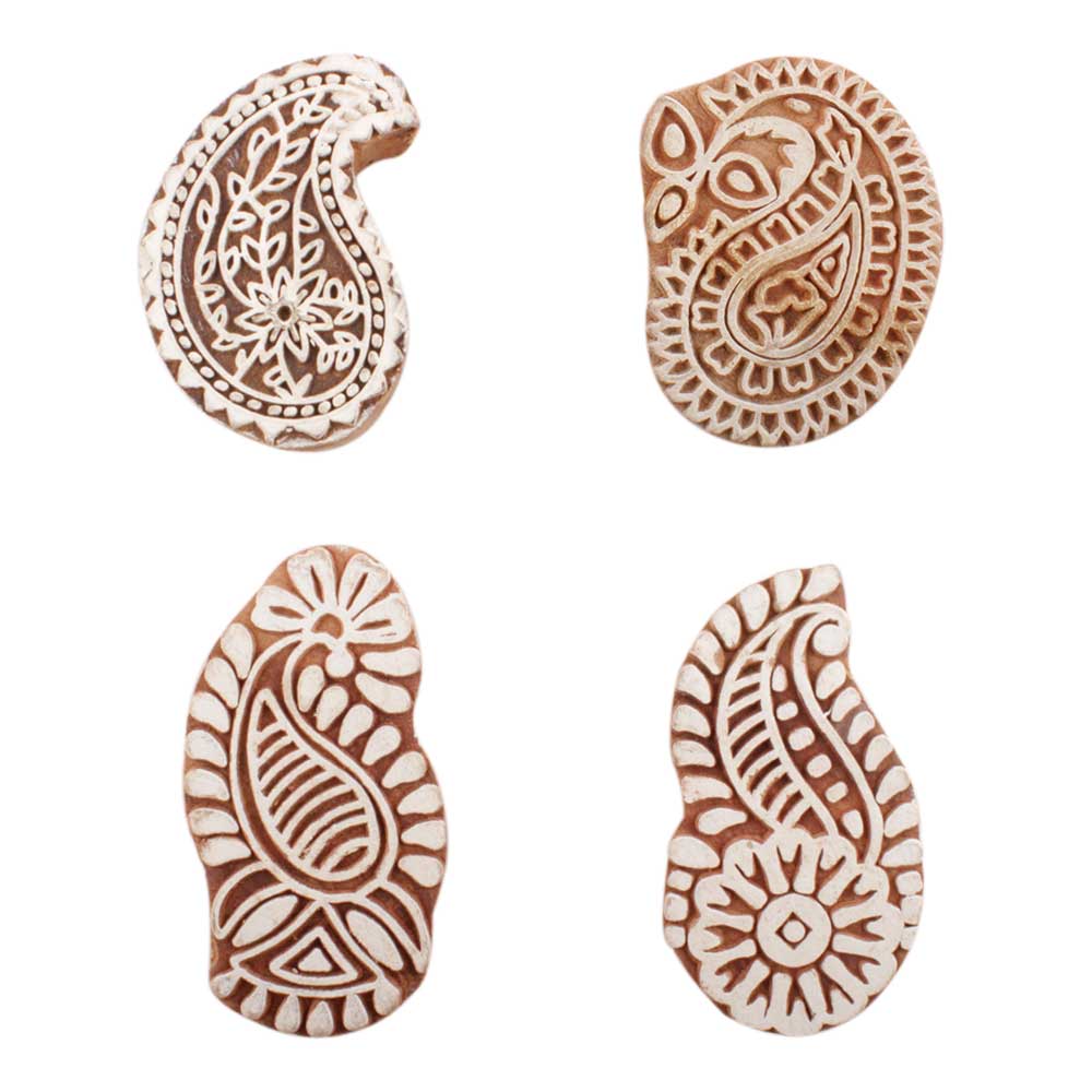 Set of 4 Piece New Mix Wooden Printing Block. Ideal for use on Fabric, Paper, Canvas, etc. These Blocks can be use to Print with Oil Colors, Fabric Colors, Water Colors, Acrylic Colors and Vegetable Colors.