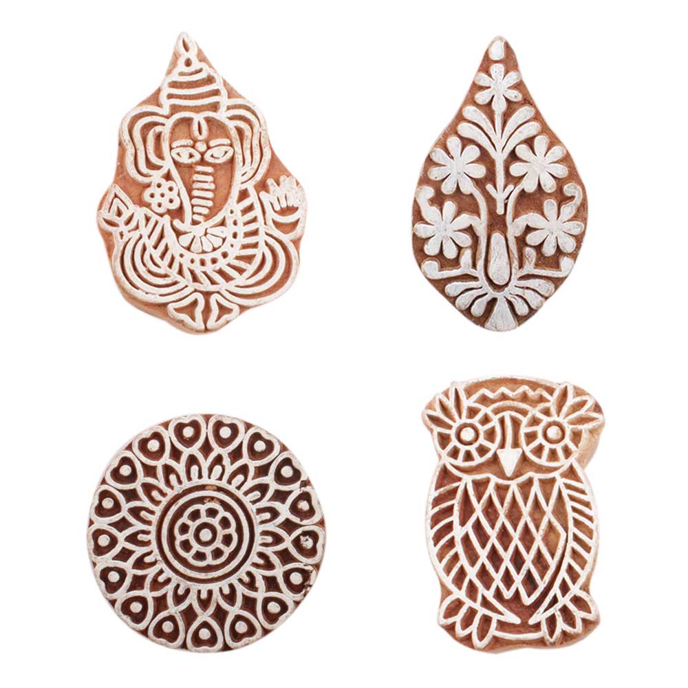 Set of 4 Piece New Mix Wooden Printing Block. Ideal for use on Fabric, Paper, Canvas, etc. These Blocks can be use to Print with Oil Colors, Fabric Colors, Water Colors, Acrylic Colors and Vegetable Colors.