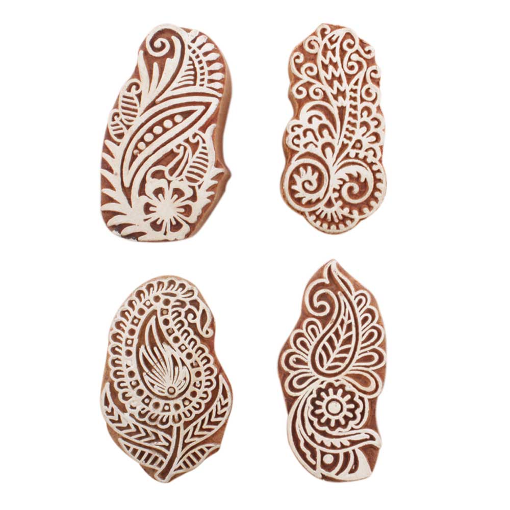 Set of 4 Piece New Mix Wooden Printing Block. Ideal for use on Fabric, Paper, Canvas, etc. These Blocks can be use to Print with Oil Colors, Fabric Colors, Water Colors, Acrylic Colors and Vegetable Colors.
