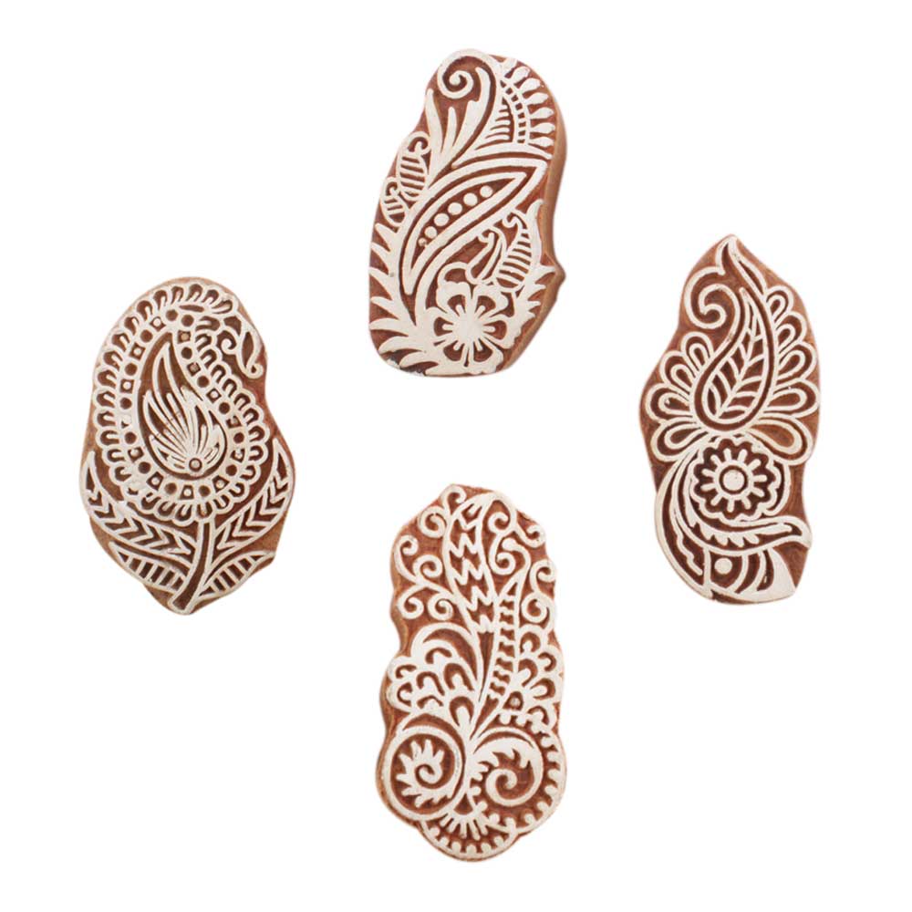 Set of 4 Piece New Mix Wooden Printing Block. Ideal for use on Fabric, Paper, Canvas, etc. These Blocks can be use to Print with Oil Colors, Fabric Colors, Water Colors, Acrylic Colors and Vegetable Colors.