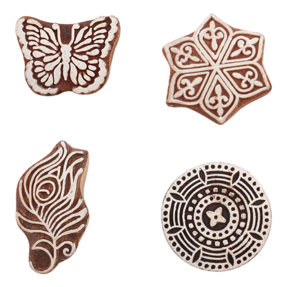 Set of 4 Piece New Mix Wooden Printing Block. Ideal for use on Fabric, Paper, Canvas, etc. These Blocks can be use to Print with Oil Colors, Fabric Colors, Water Colors, Acrylic Colors and Vegetable Colors.