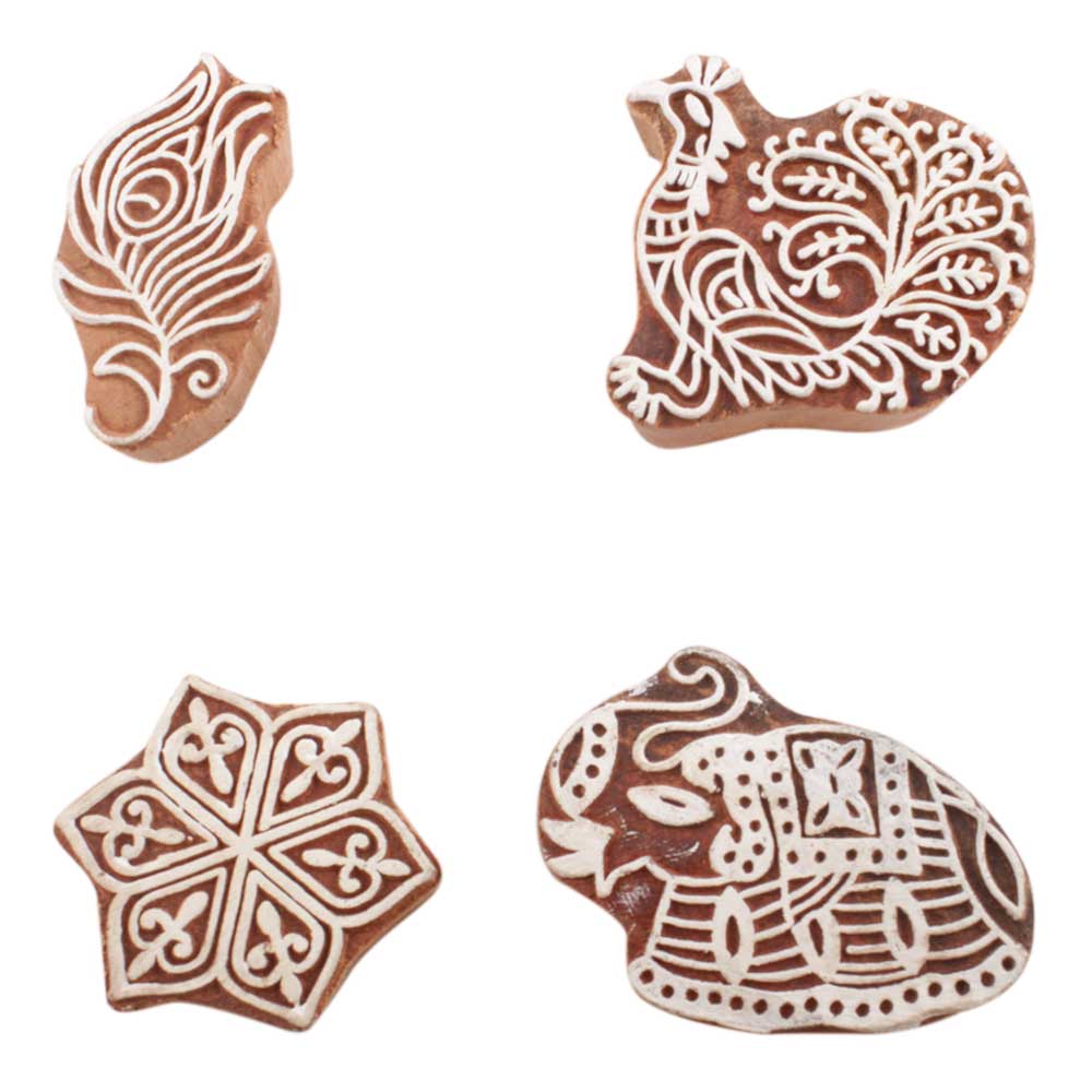 Set of 4 Piece New Mix Wooden Printing Block. Ideal for use on Fabric, Paper, Canvas, etc. These Blocks can be use to Print with Oil Colors, Fabric Colors, Water Colors, Acrylic Colors and Vegetable Colors.