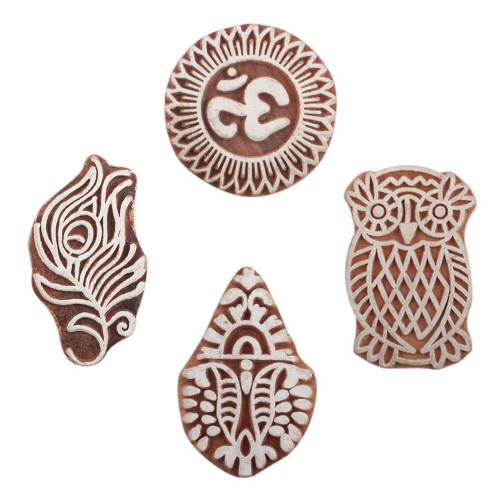 Set of 4 Piece New Mix Wooden Printing Block. Ideal for use on Fabric, Paper, Canvas, etc. These Blocks can be use to Print with Oil Colors, Fabric Colors, Water Colors, Acrylic Colors and Vegetable Colors.