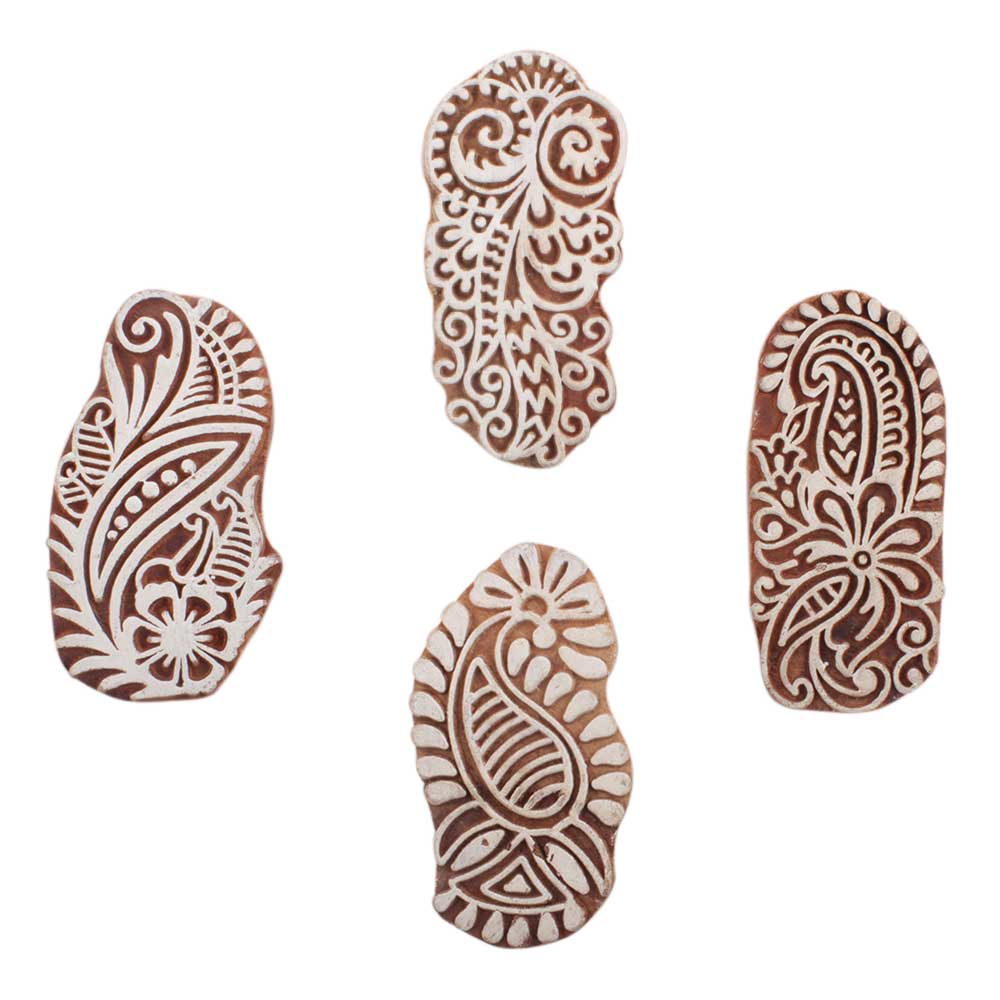 Set of 4 Piece New Mix Wooden Printing Block. Ideal for use on Fabric, Paper, Canvas, etc. These Blocks can be use to Print with Oil Colors, Fabric Colors, Water Colors, Acrylic Colors and Vegetable Colors.