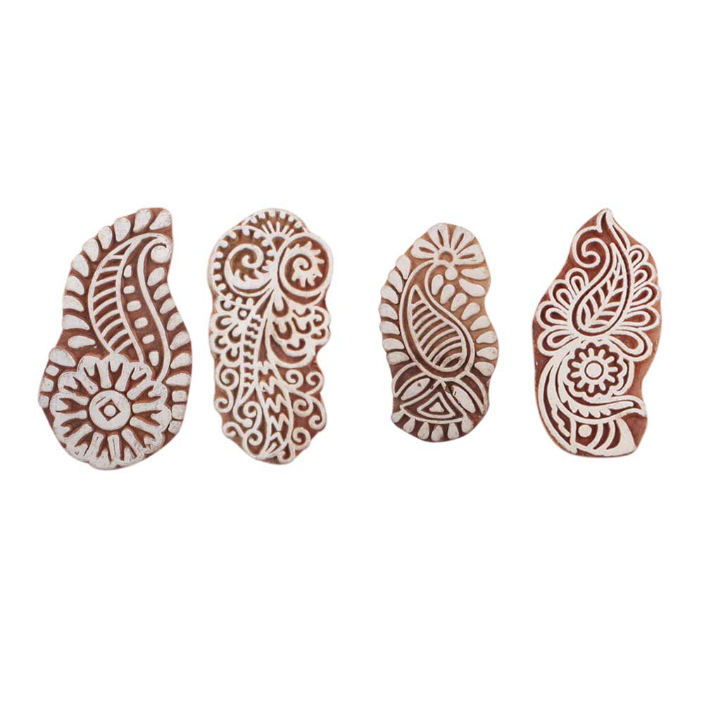 Set of 4 Piece New Mix Wooden Printing Block. Ideal for use on Fabric, Paper, Canvas, etc. These Blocks can be use to Print with Oil Colors, Fabric Colors, Water Colors, Acrylic Colors and Vegetable Colors.