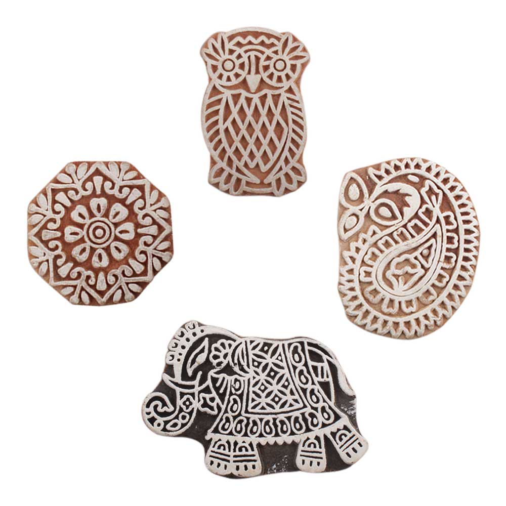 Set of 4 Piece New Mix Wooden Printing Block. Ideal for use on Fabric, Paper, Canvas, etc. These Blocks can be use to Print with Oil Colors, Fabric Colors, Water Colors, Acrylic Colors and Vegetable Colors.