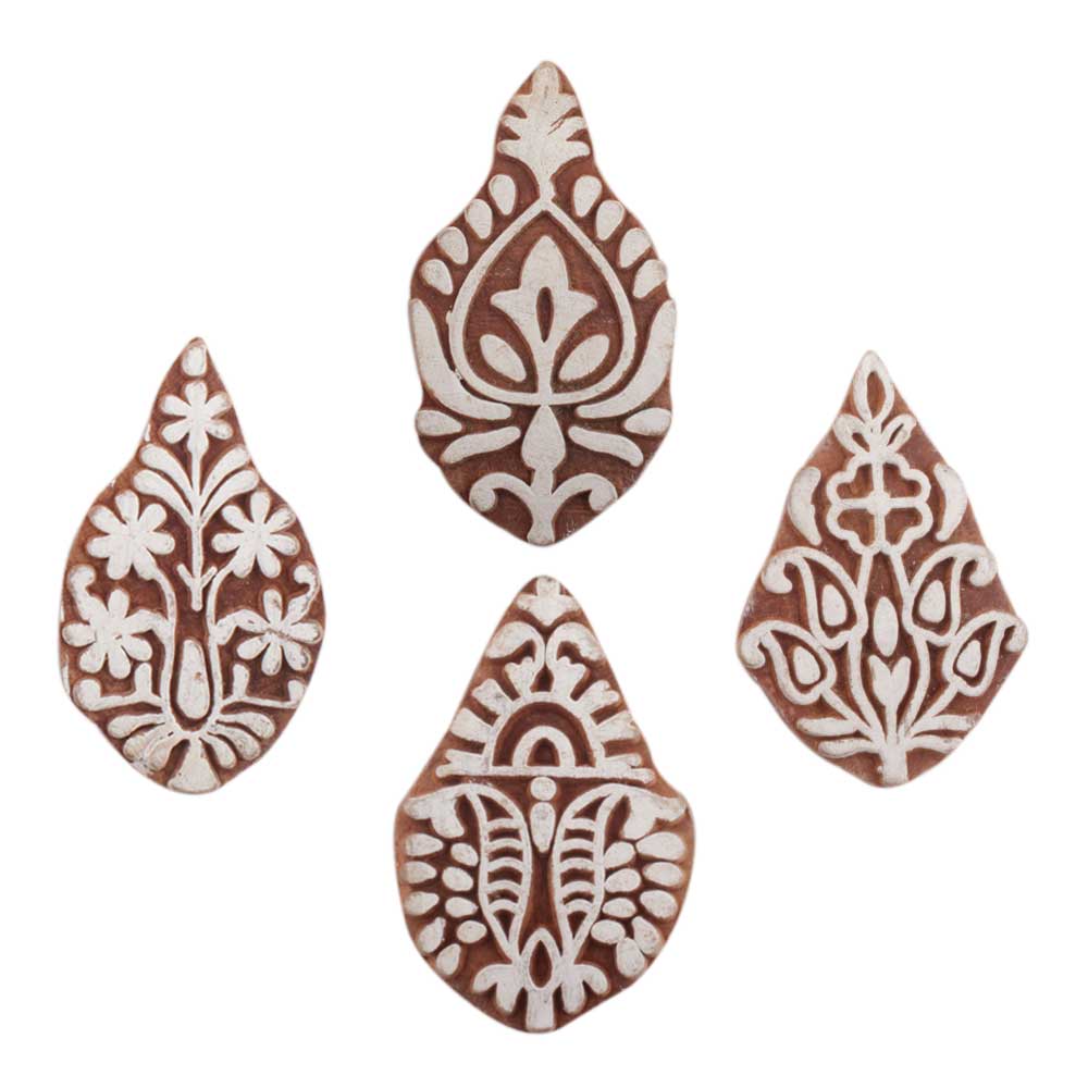Set of 4 Piece New Mix Wooden Printing Block. Ideal for use on Fabric, Paper, Canvas, etc. These Blocks can be use to Print with Oil Colors, Fabric Colors, Water Colors, Acrylic Colors and Vegetable Colors.