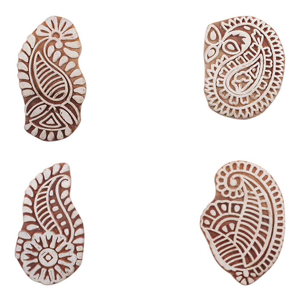 Set of 4 Piece New Mix Wooden Printing Block. Ideal for use on Fabric, Paper, Canvas, etc. These Blocks can be use to Print with Oil Colors, Fabric Colors, Water Colors, Acrylic Colors and Vegetable Colors.