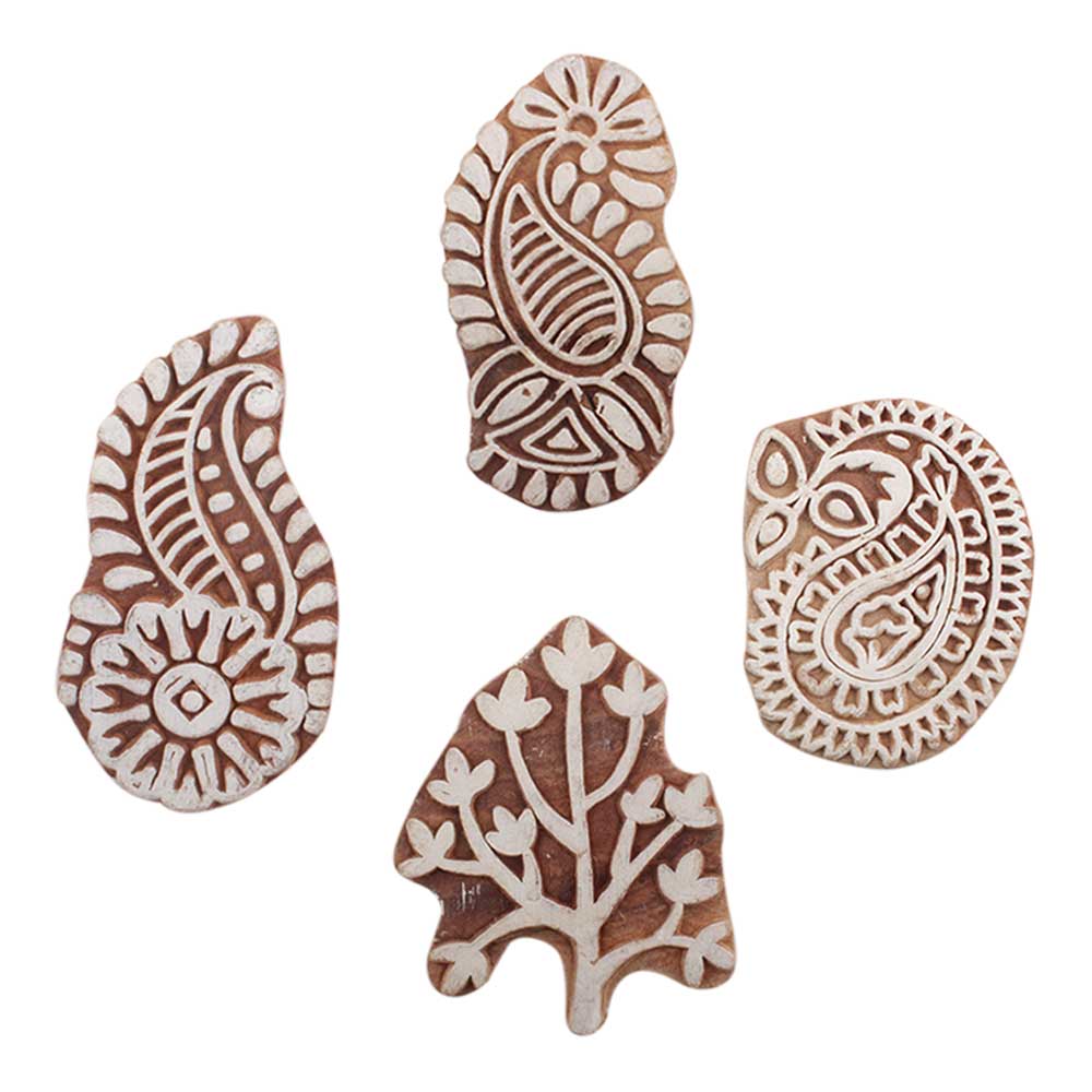 Set of 4 Piece New Mix Wooden Printing Block. Ideal for use on Fabric, Paper, Canvas, etc. These Blocks can be use to Print with Oil Colors, Fabric Colors, Water Colors, Acrylic Colors and Vegetable Colors.