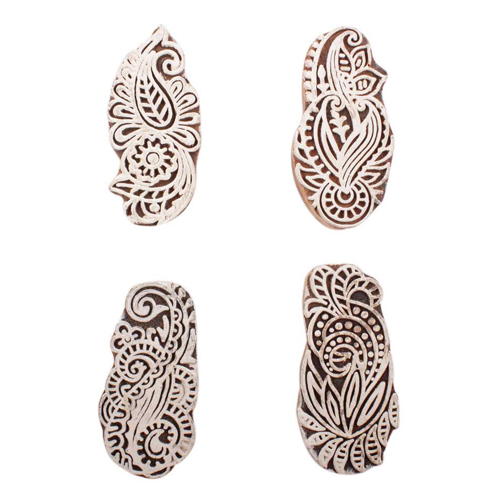 Set of 4 Piece New Mix Wooden Printing Block. Ideal for use on Fabric, Paper, Canvas, etc. These Blocks can be use to Print with Oil Colors, Fabric Colors, Water Colors, Acrylic Colors and Vegetable Colors.