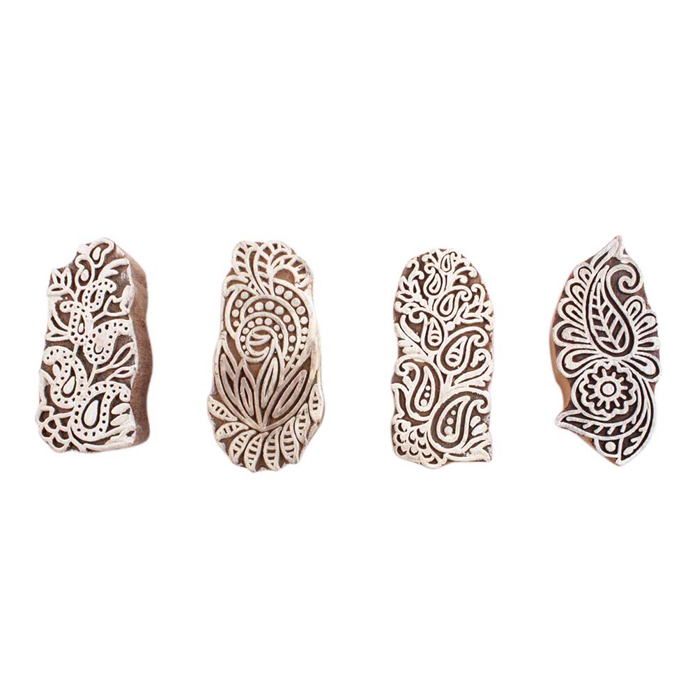 Set of 4 Piece New Mix Wooden Printing Block. Ideal for use on Fabric, Paper, Canvas, etc. These Blocks can be use to Print with Oil Colors, Fabric Colors, Water Colors, Acrylic Colors and Vegetable Colors.