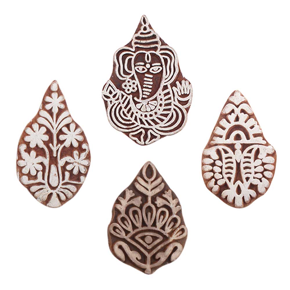 Set of 4 Piece New Mix Wooden Printing Blocks. Ideal for use on Fabric, Paper, Canvas, etc. These Blocks can be use to Print with Oil Colors, Fabric Colors, Water Colors, Acrylic Colors and Vegetable Colors.