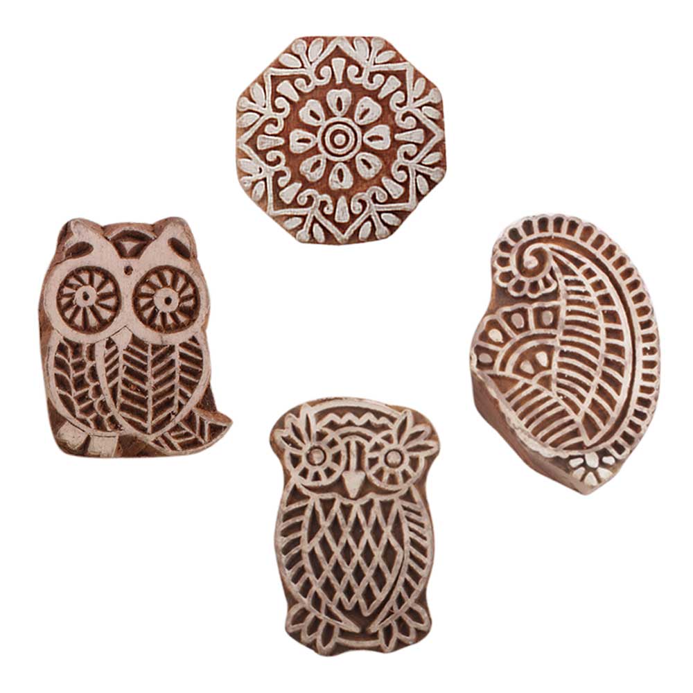 Set of 4 Piece New Mix Wooden Printing Blocks. Ideal for use on Fabric, Paper, Canvas, etc. These Blocks can be use to Print with Oil Colors, Fabric Colors, Water Colors, Acrylic Colors and Vegetable Colors.