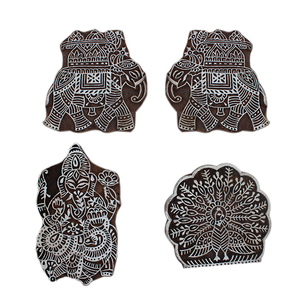 Set of 4 Piece New Wooden Printing Block. Ideal for Using on Fabric, Paper, Canvas, etc. These Blocks can be use to Print with Oil Colors, Fabric Colors, Water Colors, Acrylic Colors and Vegetable Colors.