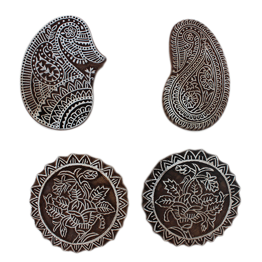 Set of 4 Piece New Wooden Printing Block. Ideal for Using on Fabric, Paper, Canvas, etc. These Blocks can be use to Print with Oil Colors, Fabric Colors, Water Colors, Acrylic Colors and Vegetable Colors.