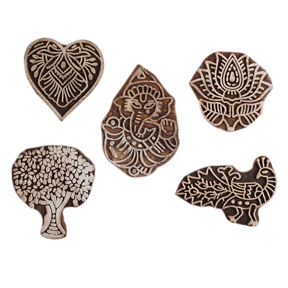 Set of 5 Piece New Mix Wooden Printing Block. Ideal for Using on Fabric, Paper, Canvas, etc. These Blocks can be use to Print with Oil Colors, Fabric Colors, Water Colors, Acrylic Colors and Vegetable Colors.