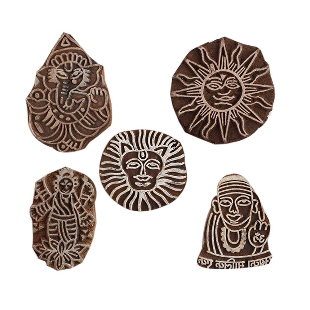 Set of 5 Piece New Mix Wooden Printing Block. Ideal for Using on Fabric, Paper, Canvas, etc. These Blocks can be use to Print with Oil Colors, Fabric Colors, Water Colors, Acrylic Colors and Vegetable Colors.