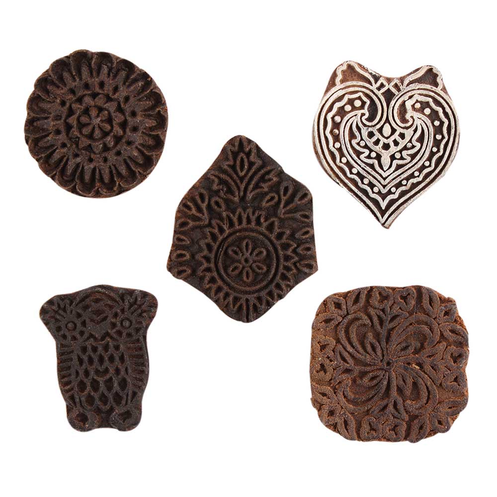 Set of 5 Piece New Mix Wooden Printing Block. Ideal for Using on Fabric, Paper, Canvas, etc. These Blocks can be use to Print with Oil Colors, Fabric Colors, Water Colors, Acrylic Colors and Vegetable Colors.