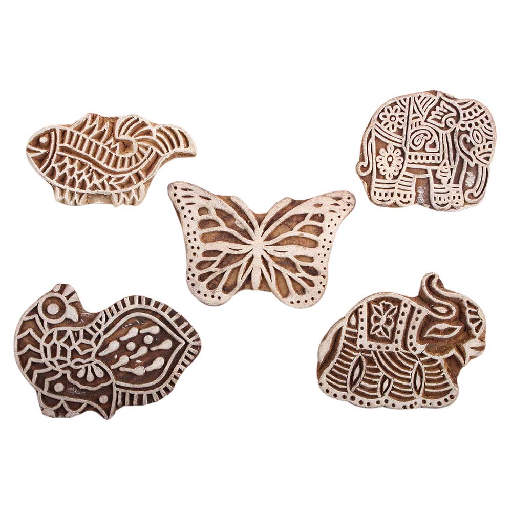 Set of 5 Piece New Mix Wooden Printing Block. Ideal for Using on Fabric, Paper, Canvas, etc. These Blocks can be use to Print with Oil Colors, Fabric Colors, Water Colors, Acrylic Colors and Vegetable Colors.