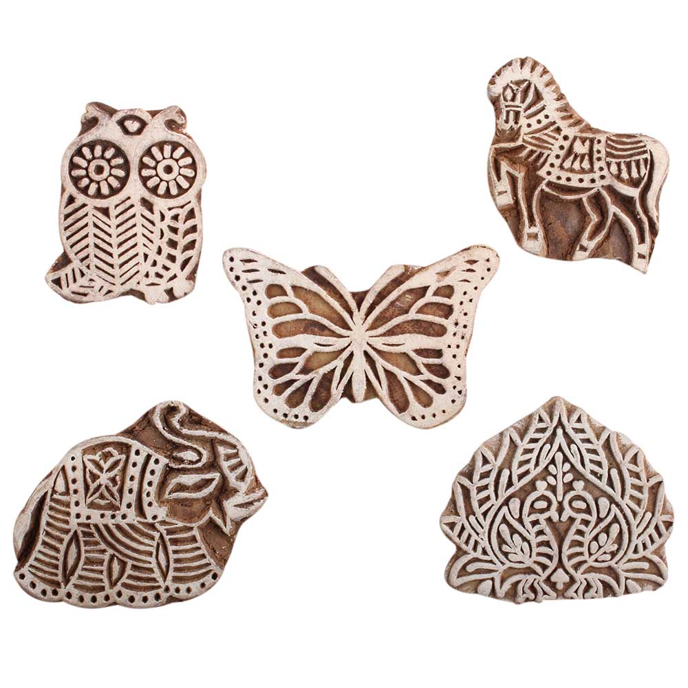 Set of 5 Piece New Mix Wooden Printing Block. Ideal for Using on Fabric, Paper, Canvas, etc. These Blocks can be use to Print with Oil Colors, Fabric Colors, Water Colors, Acrylic Colors and Vegetable Colors.