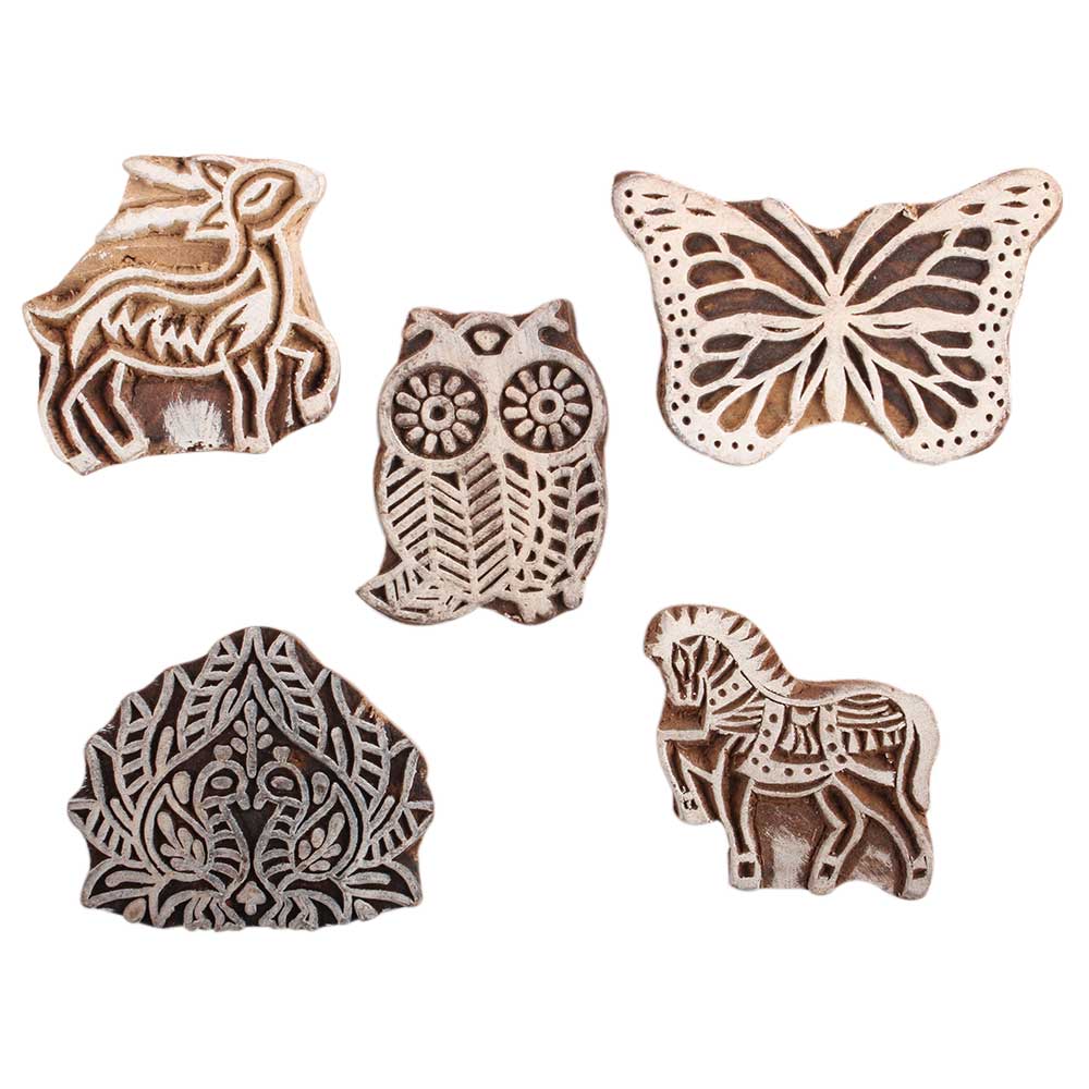 Set of 5 Piece New Mix Wooden Printing Block. Ideal for Using on Fabric, Paper, Canvas, etc. These Blocks can be use to Print with Oil Colors, Fabric Colors, Water Colors, Acrylic Colors and Vegetable Colors.
