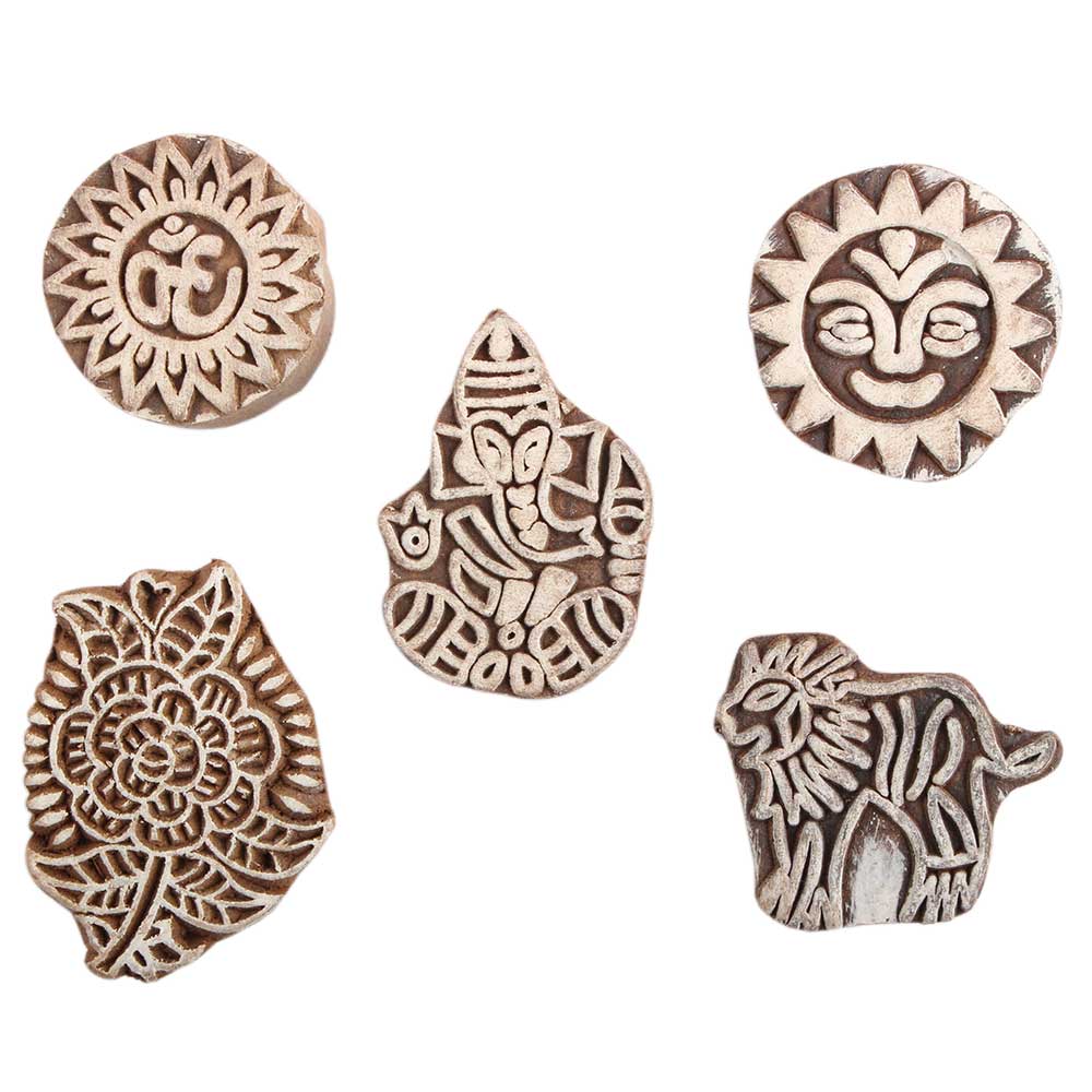 Set of 5 Piece New Mix Wooden Printing Block. Ideal for Using on Fabric, Paper, Canvas, etc. These Blocks can be use to Print with Oil Colors, Fabric Colors, Water Colors, Acrylic Colors and Vegetable Colors.