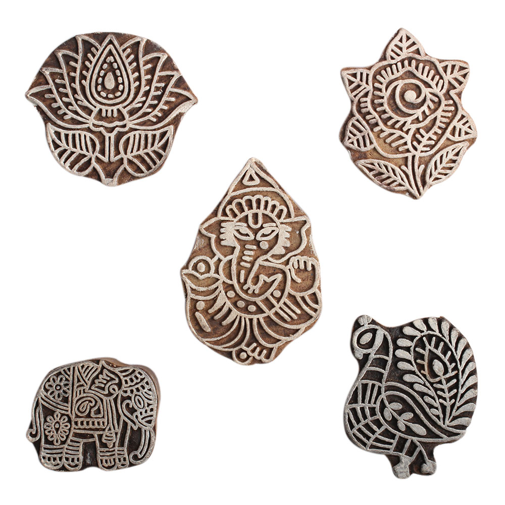 Set of 5 Piece New Mix Wooden Printing Block. Ideal for Using on Fabric, Paper, Canvas, etc. These Blocks can be use to Print with Oil Colors, Fabric Colors, Water Colors, Acrylic Colors and Vegetable Colors.
