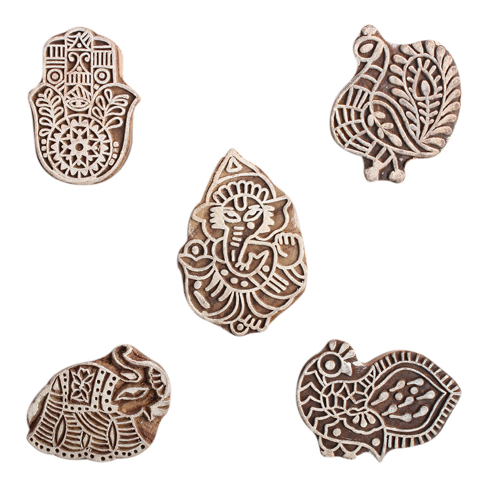 Set of 5 Piece New Mix Wooden Printing Block. Ideal for Using on Fabric, Paper, Canvas, etc. These Blocks can be use to Print with Oil Colors, Fabric Colors, Water Colors, Acrylic Colors and Vegetable Colors.