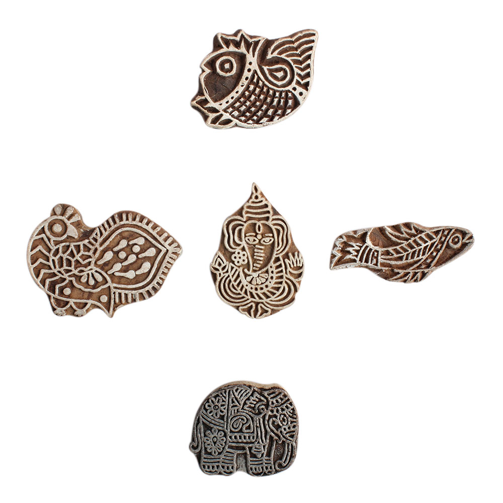 Set of 5 Piece New Mix Wooden Printing Block. Ideal for Using on Fabric, Paper, Canvas, etc. These Blocks can be use to Print with Oil Colors, Fabric Colors, Water Colors, Acrylic Colors and Vegetable Colors.