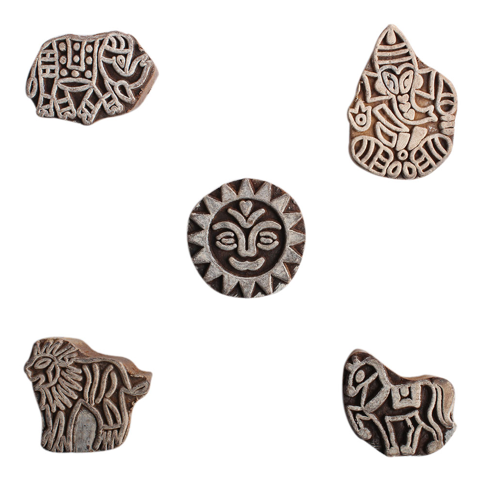 Set of 5 Piece New Mix Wooden Printing Block. Ideal for Using on Fabric, Paper, Canvas, etc. These Blocks can be use to Print with Oil Colors, Fabric Colors, Water Colors, Acrylic Colors and Vegetable Colors.