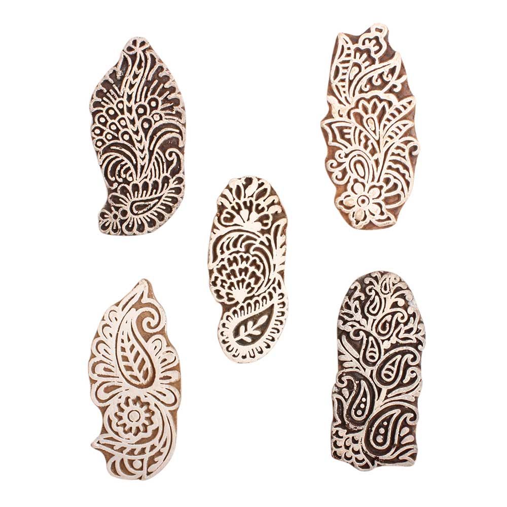 Set of 5 Piece New Mix Wooden Printing Block. Ideal for Using on Fabric, Paper, Canvas, etc. These Blocks can be use to Print with Oil Colors, Fabric Colors, Water Colors, Acrylic Colors and Vegetable Colors.