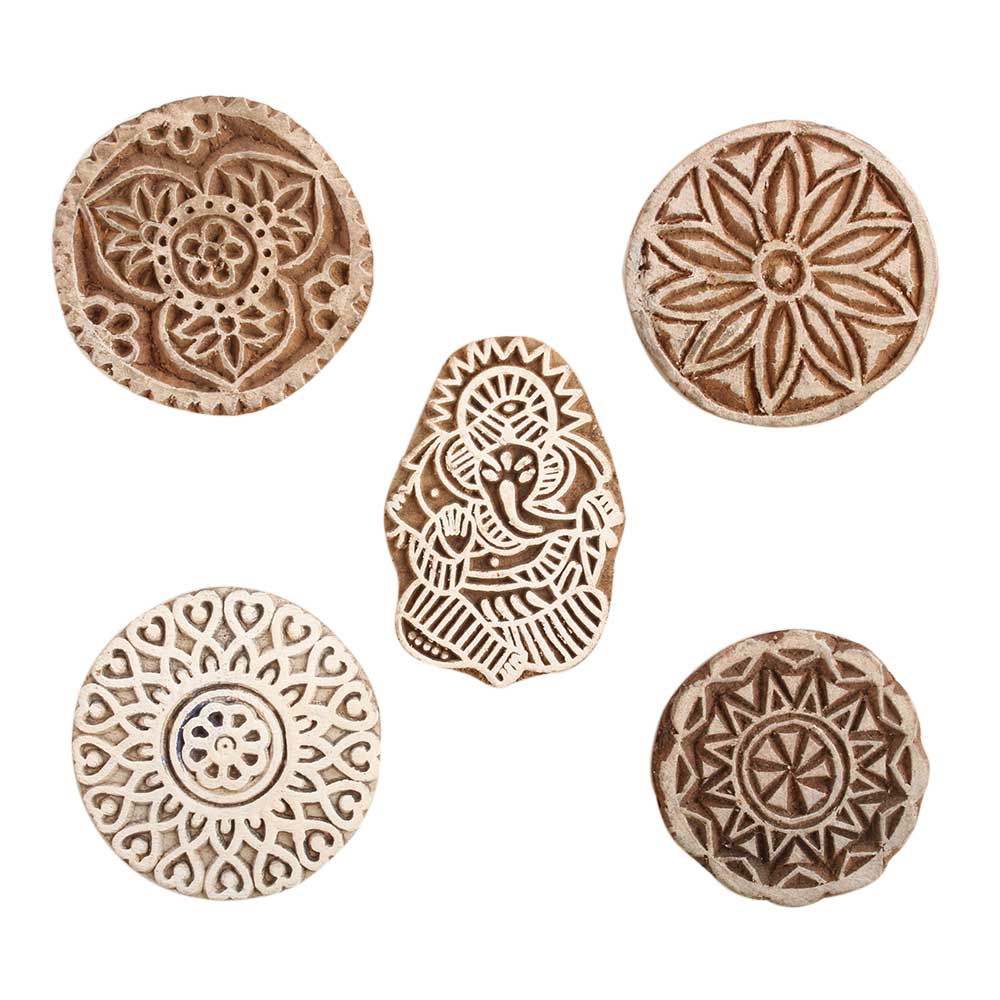 Set of 5 Piece New Mix Wooden Printing Block. Ideal for use on Fabric, Paper, Canvas, etc. These Blocks can be use to Print with Oil Colors, Fabric Colors, Water Colors, Acrylic Colors and Vegetable Colors.