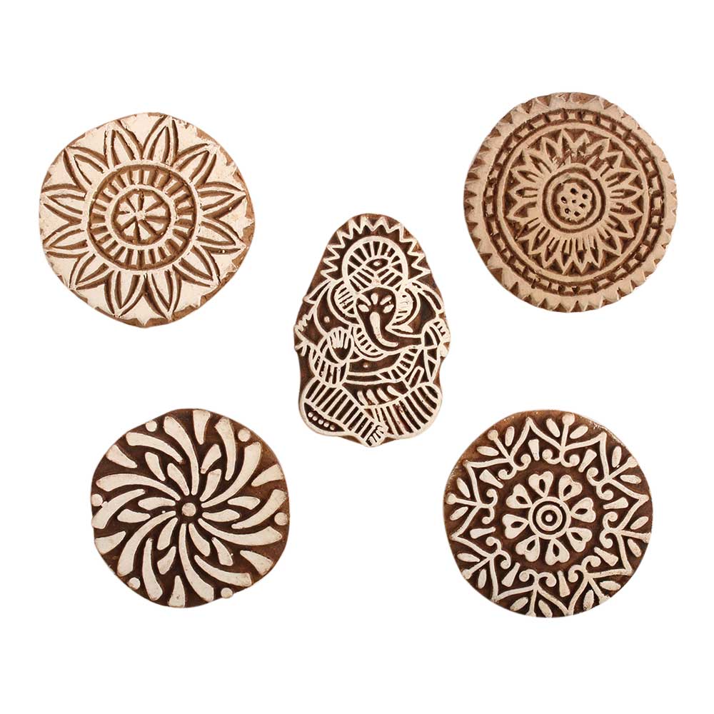 Set of 5 Piece New Mix Wooden Printing Block. Ideal for use on Fabric, Paper, Canvas, etc. These Blocks can be use to Print with Oil Colors, Fabric Colors, Water Colors, Acrylic Colors and Vegetable Colors.
