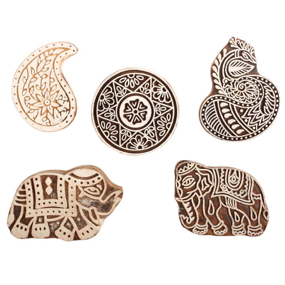 Set of 5 Piece New Mix Wooden Printing Block. Ideal for use on Fabric, Paper, Canvas, etc. These Blocks can be use to Print with Oil Colors, Fabric Colors, Water Colors, Acrylic Colors and Vegetable Colors.