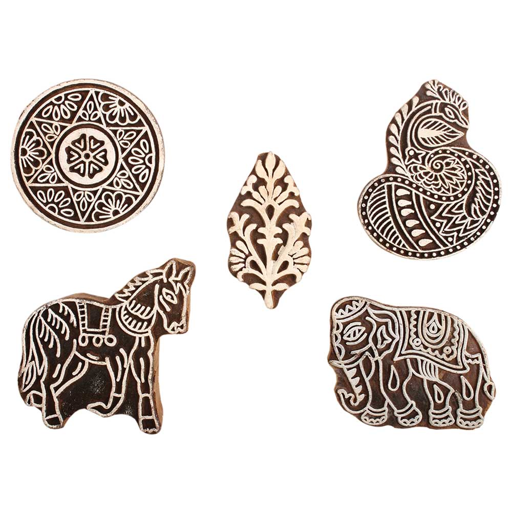 Set of 5 Piece New Mix Wooden Printing Block. Ideal for use on Fabric, Paper, Canvas, etc. These Blocks can be use to Print with Oil Colors, Fabric Colors, Water Colors, Acrylic Colors and Vegetable Colors.
