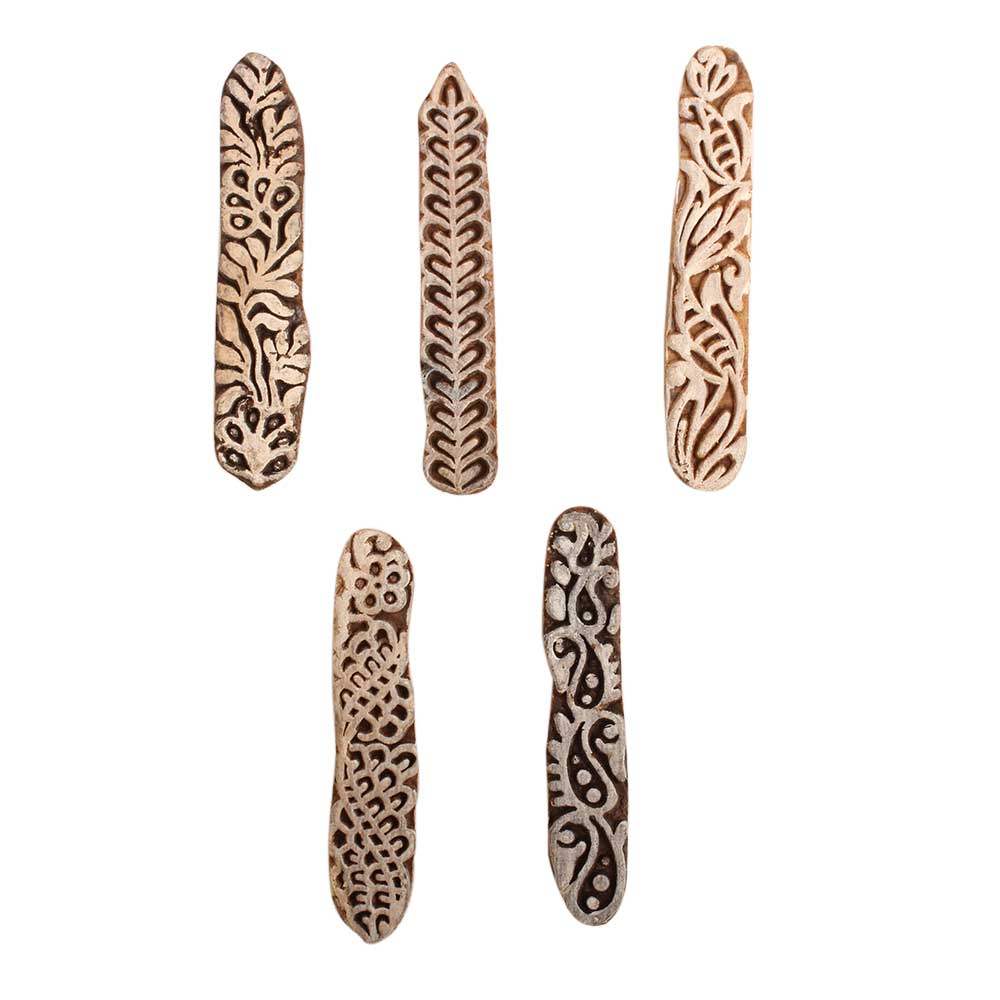 Set of 5 Piece New Mix Wooden Printing Block. Ideal for use on Fabric, Paper, Canvas, etc. These Blocks can be use to Print with Oil Colors, Fabric Colors, Water Colors, Acrylic Colors and Vegetable Colors.