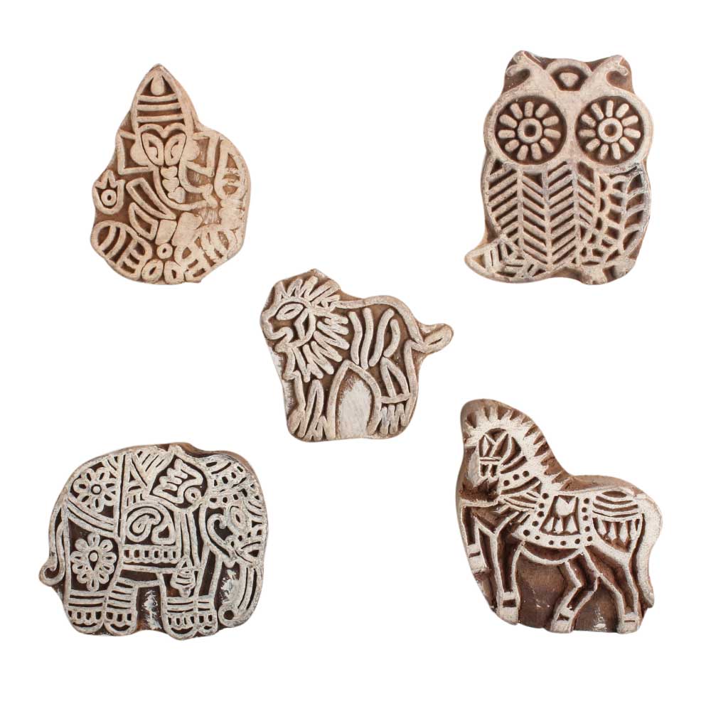 Set of 5 Piece New Mix Wooden Printing Block. Ideal for use on Fabric, Paper, Canvas, etc. These Blocks can be use to Print with Oil Colors, Fabric Colors, Water Colors, Acrylic Colors and Vegetable Colors.