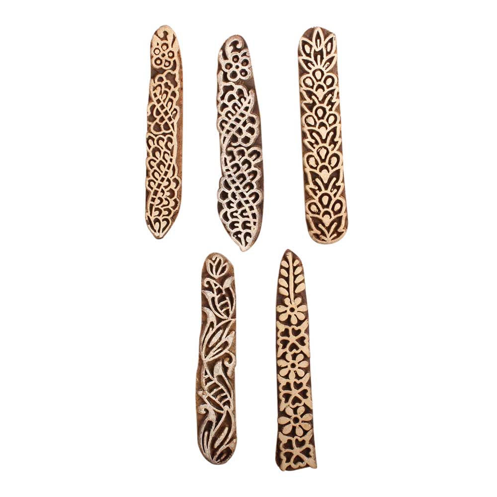 Set of 5 Piece New Mix Wooden Printing Block. Ideal for use on Fabric, Paper, Canvas, etc. These Blocks can be use to Print with Oil Colors, Fabric Colors, Water Colors, Acrylic Colors and Vegetable Colors.
