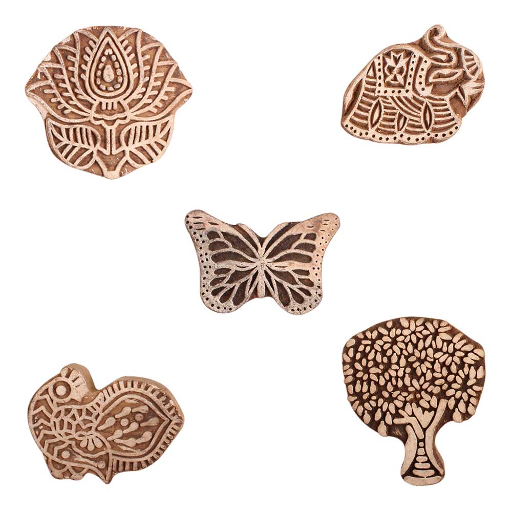 Set of 5 Piece New Mix Wooden Printing Block. Ideal for use on Fabric, Paper, Canvas, etc. These Blocks can be use to Print with Oil Colors, Fabric Colors, Water Colors, Acrylic Colors and Vegetable Colors.