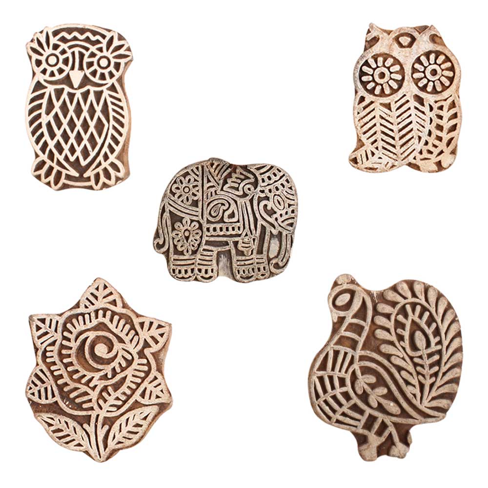 Set of 5 Piece New Mix Wooden Printing Block. Ideal for use on Fabric, Paper, Canvas, etc. These Blocks can be use to Print with Oil Colors, Fabric Colors, Water Colors, Acrylic Colors and Vegetable Colors.