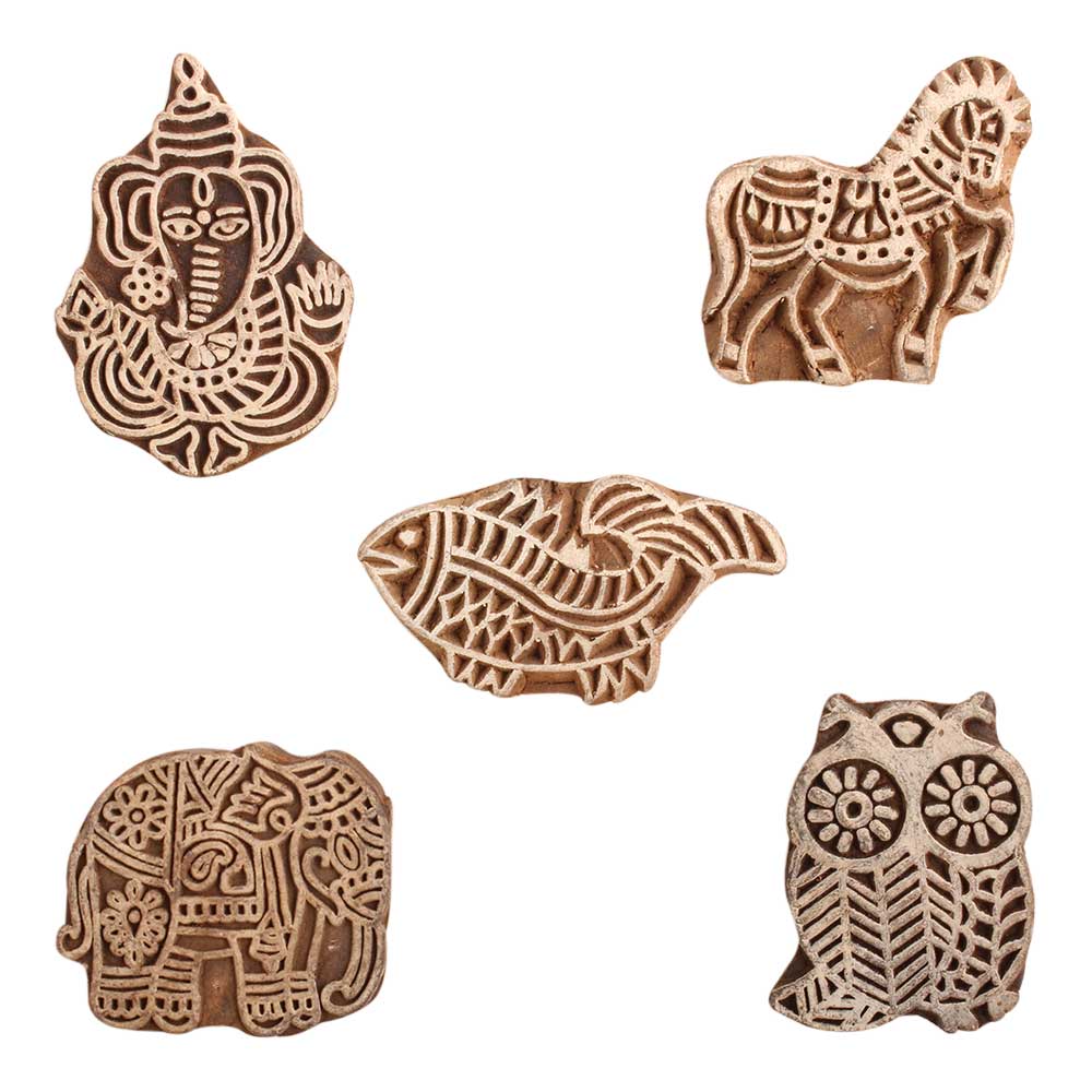 Set of 5 Piece New Mix Wooden Printing Block. Ideal for use on Fabric, Paper, Canvas, etc. These Blocks can be use to Print with Oil Colors, Fabric Colors, Water Colors, Acrylic Colors and Vegetable Colors.