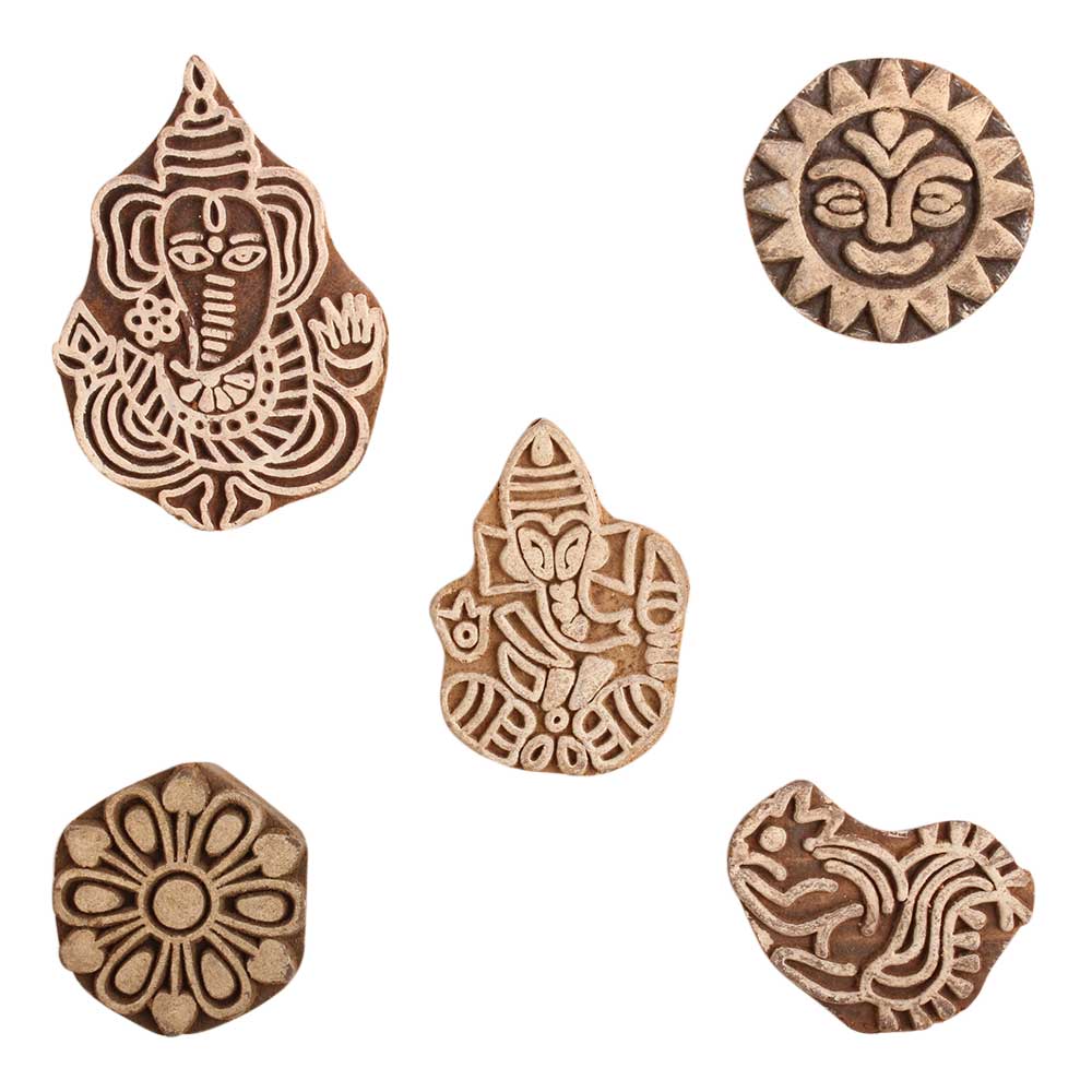 Set of 5 Piece New Mix Wooden Printing Block. Ideal for use on Fabric, Paper, Canvas, etc. These Blocks can be use to Print with Oil Colors, Fabric Colors, Water Colors, Acrylic Colors and Vegetable Colors.