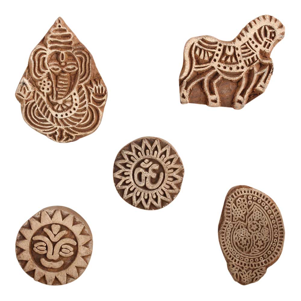 Set of 5 Piece New Mix Wooden Printing Block. Ideal for use on Fabric, Paper, Canvas, etc. These Blocks can be use to Print with Oil Colors, Fabric Colors, Water Colors, Acrylic Colors and Vegetable Colors.