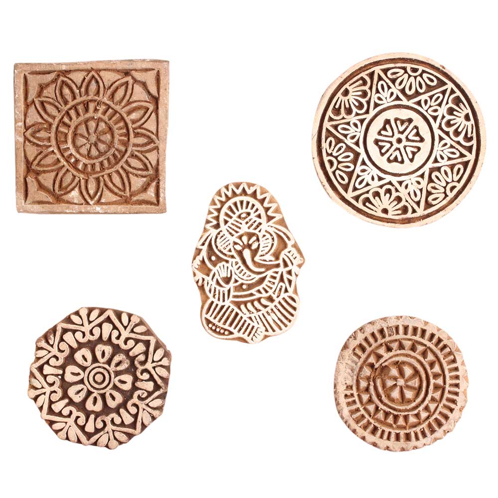 Set of 5 Piece New Mix Wooden Printing Block. Ideal for use on Fabric, Paper, Canvas, etc. These Blocks can be use to Print with Oil Colors, Fabric Colors, Water Colors, Acrylic Colors and Vegetable Colors.