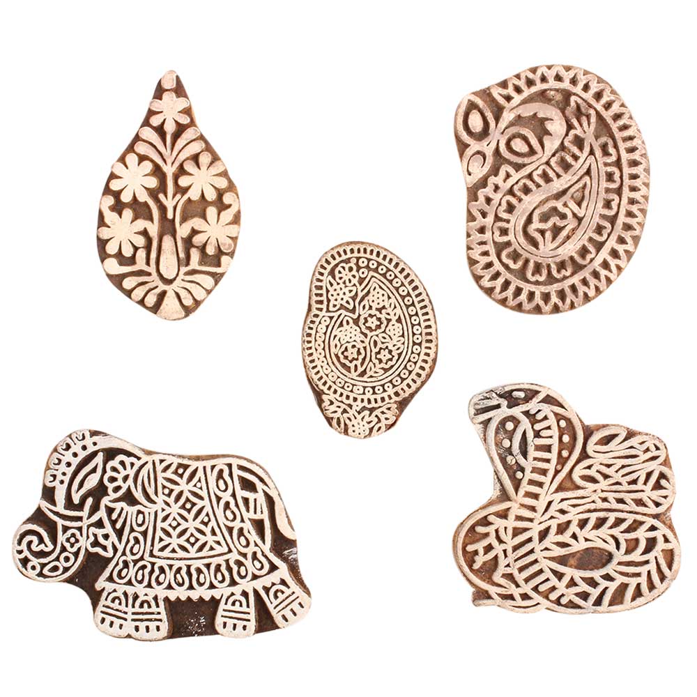 Set of 5 Piece New Mix Wooden Printing Block. Ideal for use on Fabric, Paper, Canvas, etc. These Blocks can be use to Print with Oil Colors, Fabric Colors, Water Colors, Acrylic Colors and Vegetable Colors.
