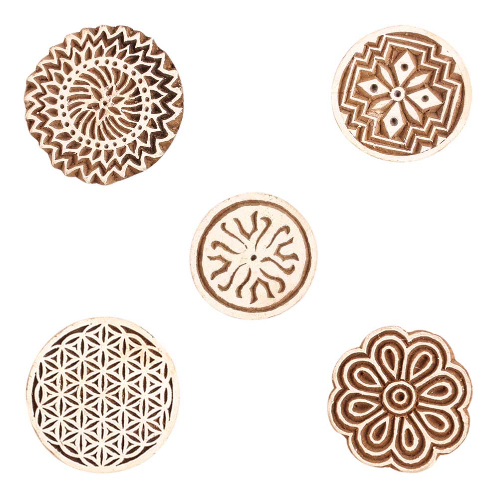 Set of 5 Piece New Mix Wooden Printing Block. Ideal for use on Fabric, Paper, Canvas, etc. These Blocks can be use to Print with Oil Colors, Fabric Colors, Water Colors, Acrylic Colors and Vegetable Colors.