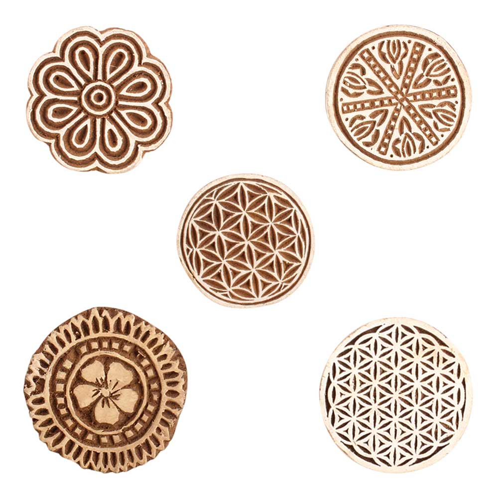 Set of 5 Piece New Mix Wooden Printing Block. Ideal for use on Fabric, Paper, Canvas, etc. These Blocks can be use to Print with Oil Colors, Fabric Colors, Water Colors, Acrylic Colors and Vegetable Colors.