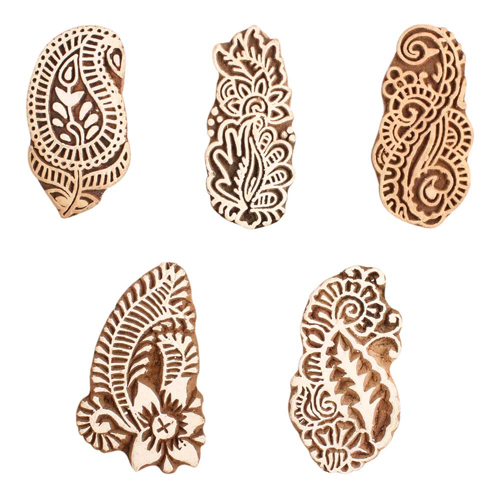 Set of 5 Piece New Mix Wooden Printing Block. Ideal for use on Fabric, Paper, Canvas, etc. These Blocks can be use to Print with Oil Colors, Fabric Colors, Water Colors, Acrylic Colors and Vegetable Colors.