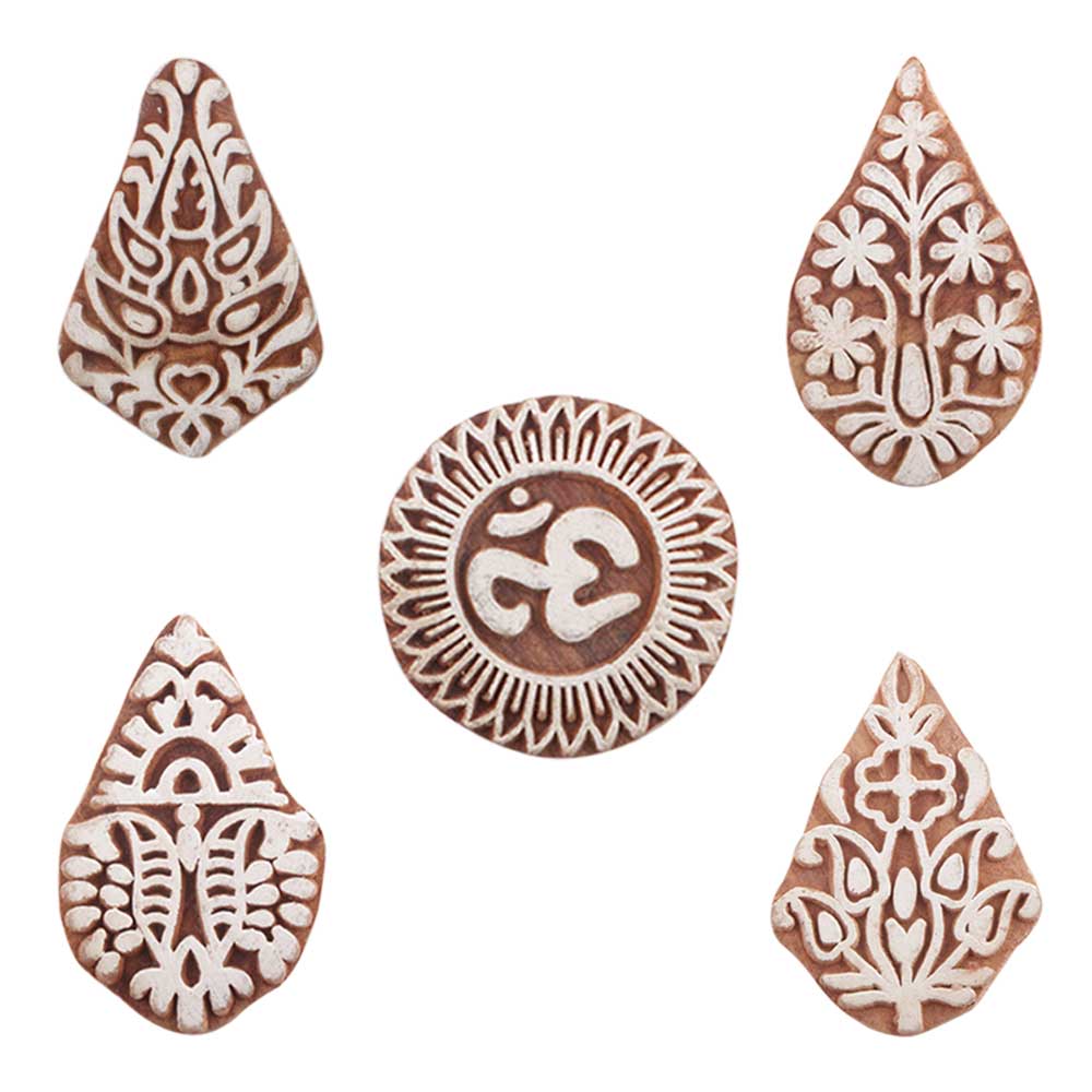 Set of 5 Piece New Mix Wooden Printing Blocks. Ideal for use on Fabric, Paper, Canvas, etc. These Blocks can be use to Print with Oil Colors, Fabric Colors, Water Colors, Acrylic Colors and Vegetable Colors.